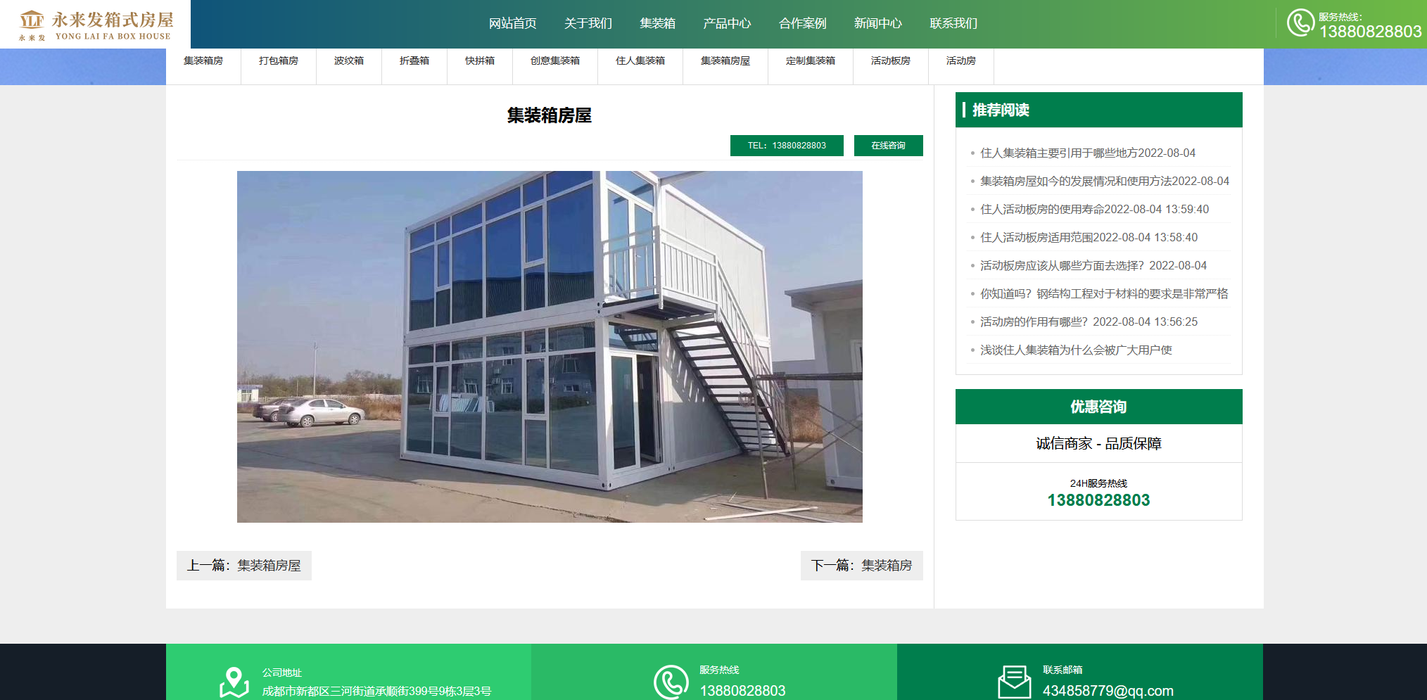 成都永来发钢结构工程有限公司是一家专业从事临建设施的企业,旗下产品类目涵盖各类型各样式活动板房、住人集装箱、打包箱、彩钢大棚、钢筋加工棚、工程围挡、岗亭等。