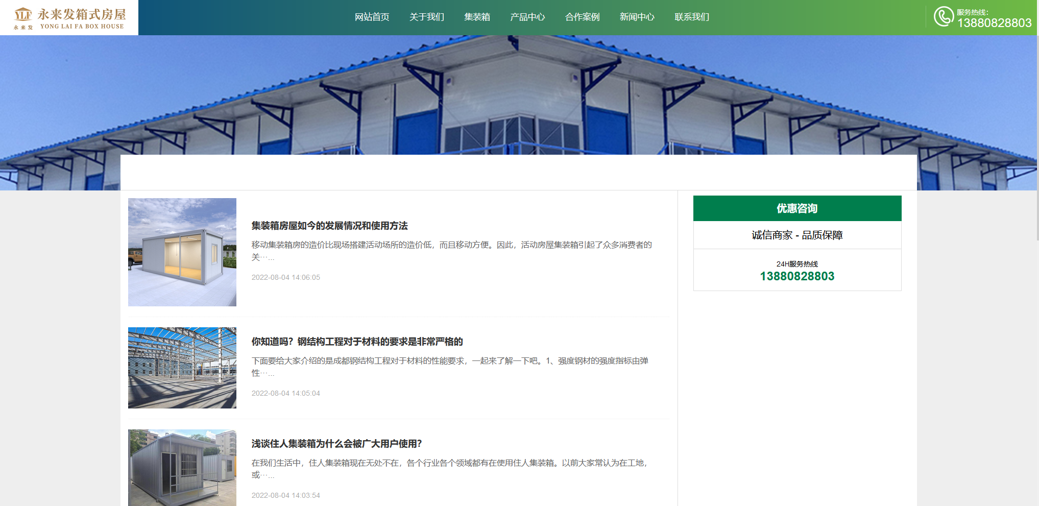 永来发公司多年深耕临建领域,用丰富的经验满足市场需求。产品可系列化开发、集成化生产、配套化供应,降低传统模式生产成本的同时,也降低了客户的采购使用成本,而且可根据用户需求,进行快速组装、拆卸、搬迁及多次周转使用,完美的诠释了临建的意义。