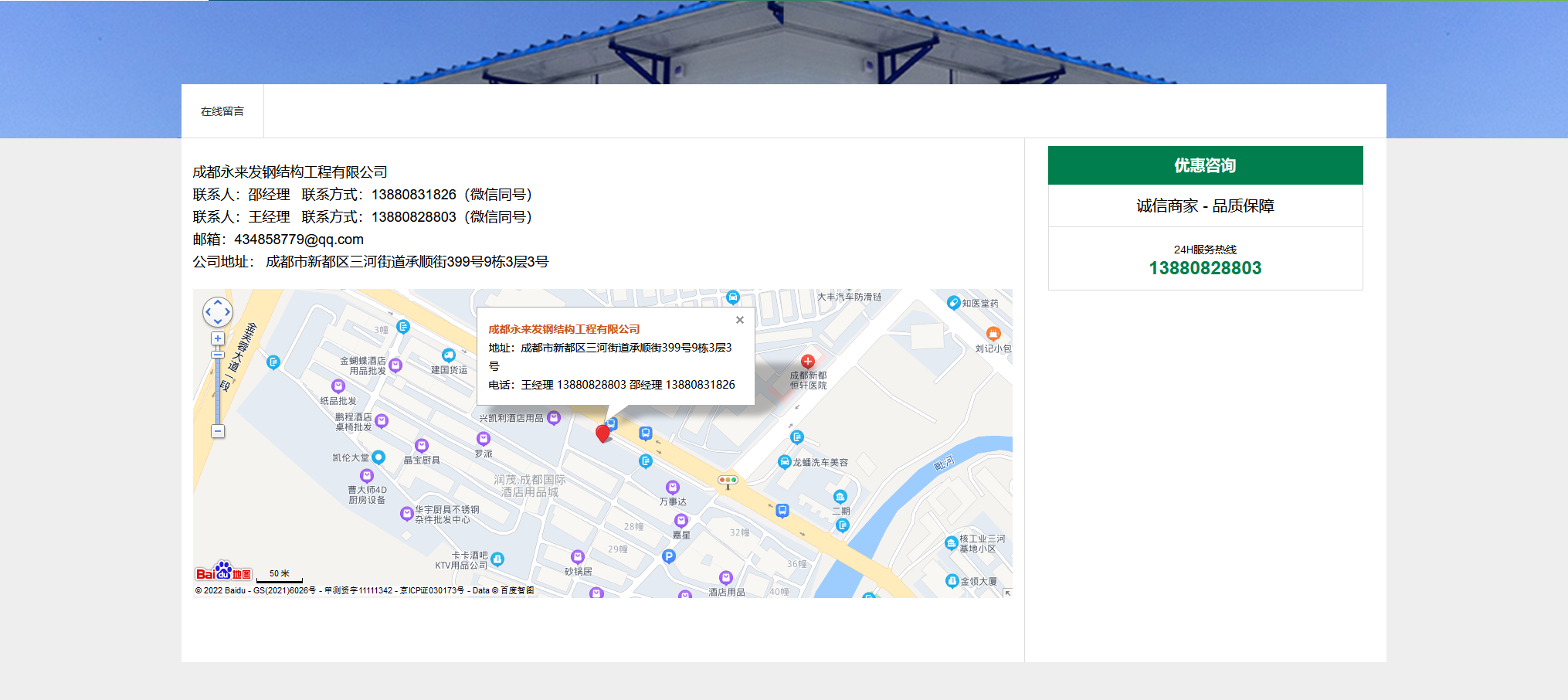 如果您也想与 成都永来发钢结构工程有限公司 一样,欢迎咨询我们: